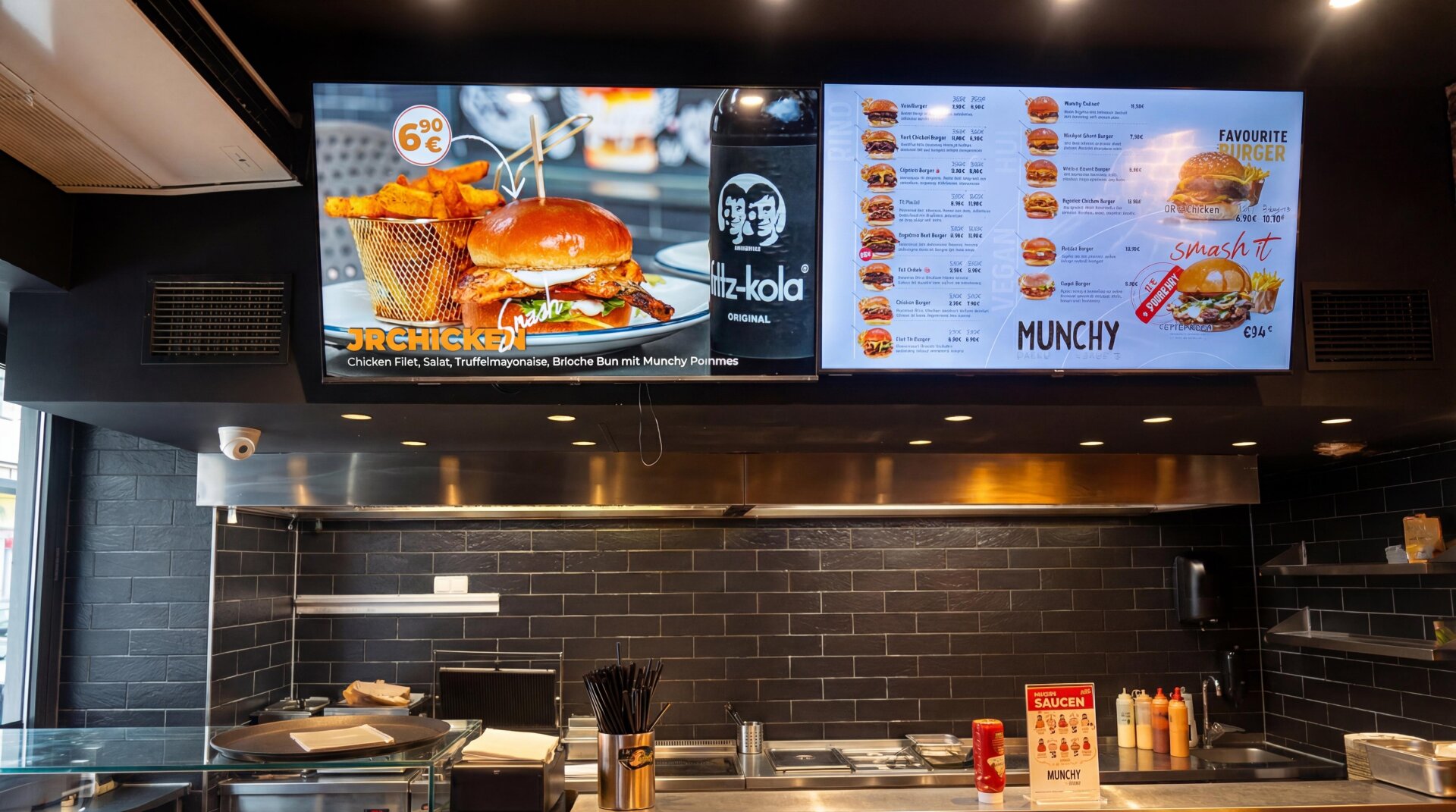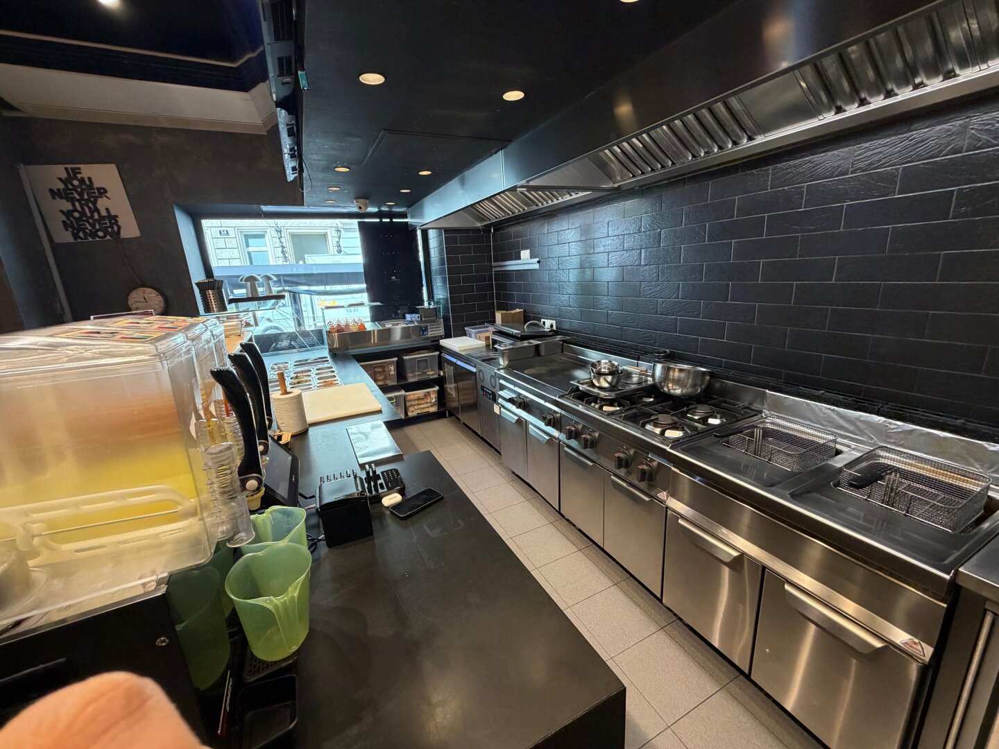 Das Lokal präsentiert sich in einem modernen, stilvollen Ambiente, das sofort Gäste anspricht und eine angenehme Atmosphäre schafft.